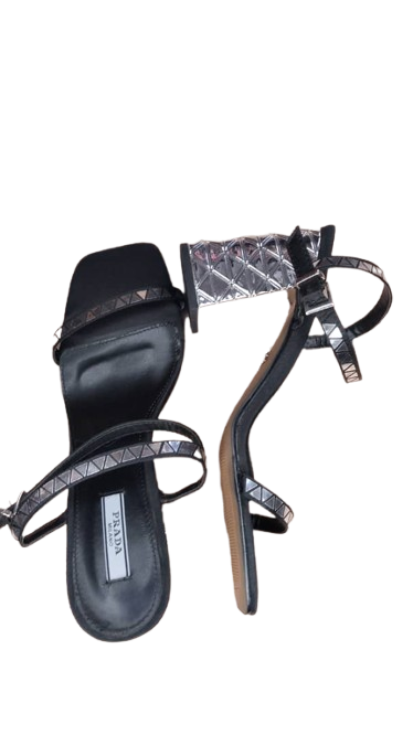 Prada Silver And Black Sandals Size 39